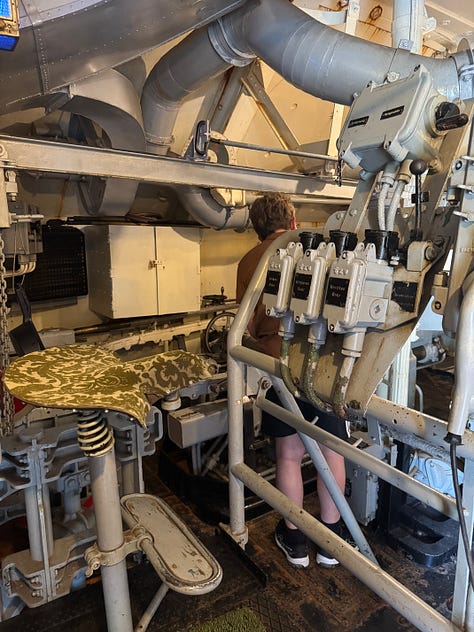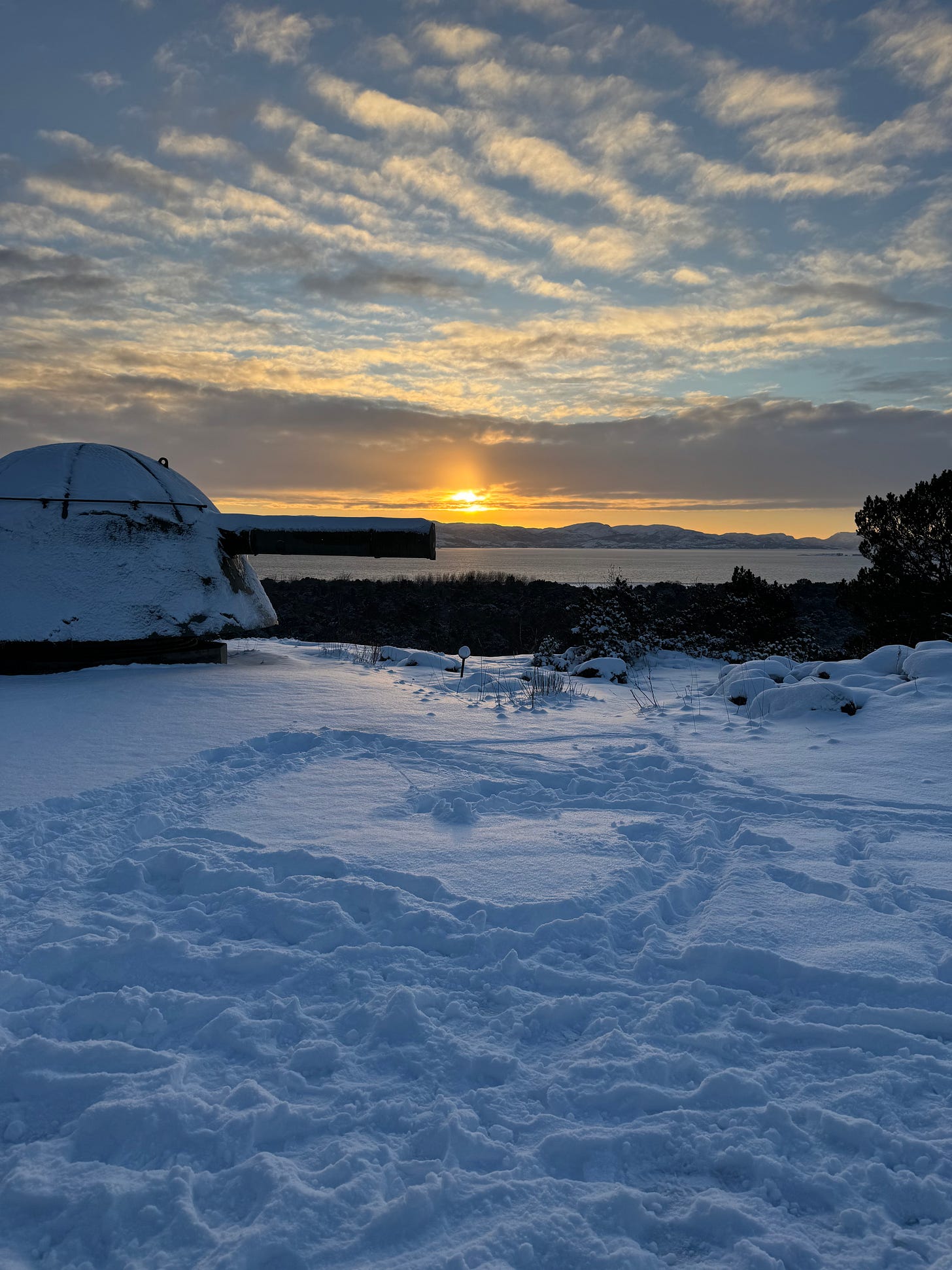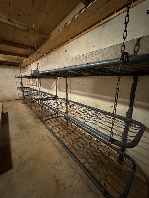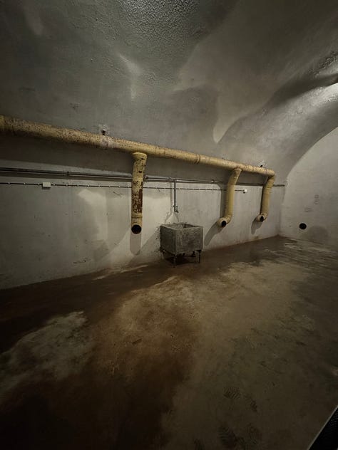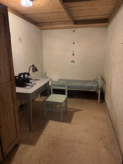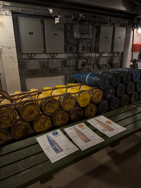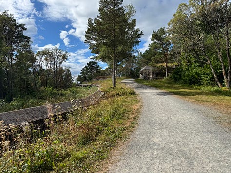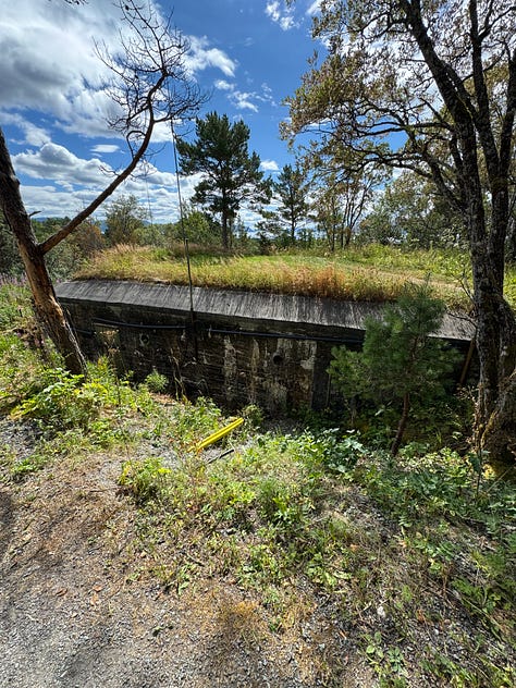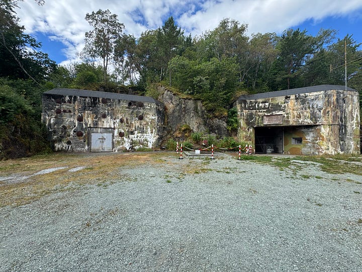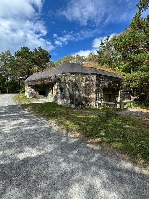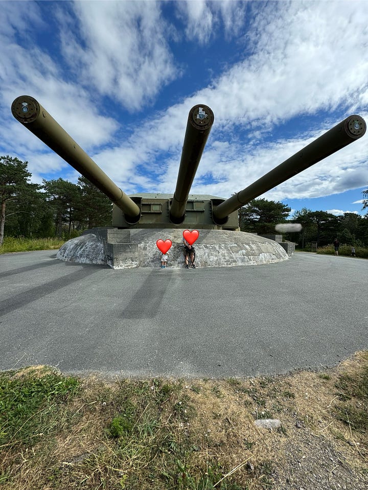 It was an interesting and at times eerie experience touring the fort. Built into the side of a stone mountain, Austrått fort was strategically placed at the entrance to Trondheimsfjord. Protruding from the top of the mountain is a three-cannon gun that was originally on board the Gneisenau battleship but was moved to the fort’s location in 1942 after the ship was damaged during a bombing raid. The gun can be seen from far and wide in our area. It’s quite impressive and is the only triple cannon gun of its kind to remain in the world today. The entire hill surrounding the massive cannon has multiple bunkers and outlook points built into it.